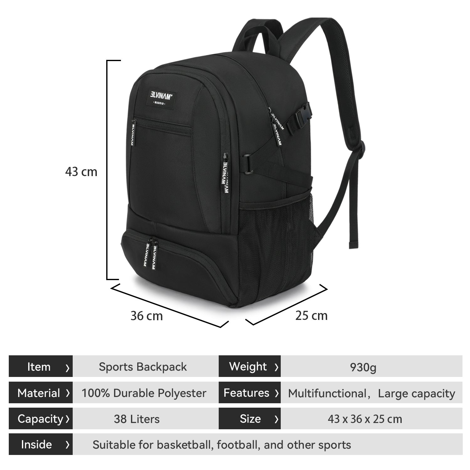 ELVINAM® Large Basketball Backpack