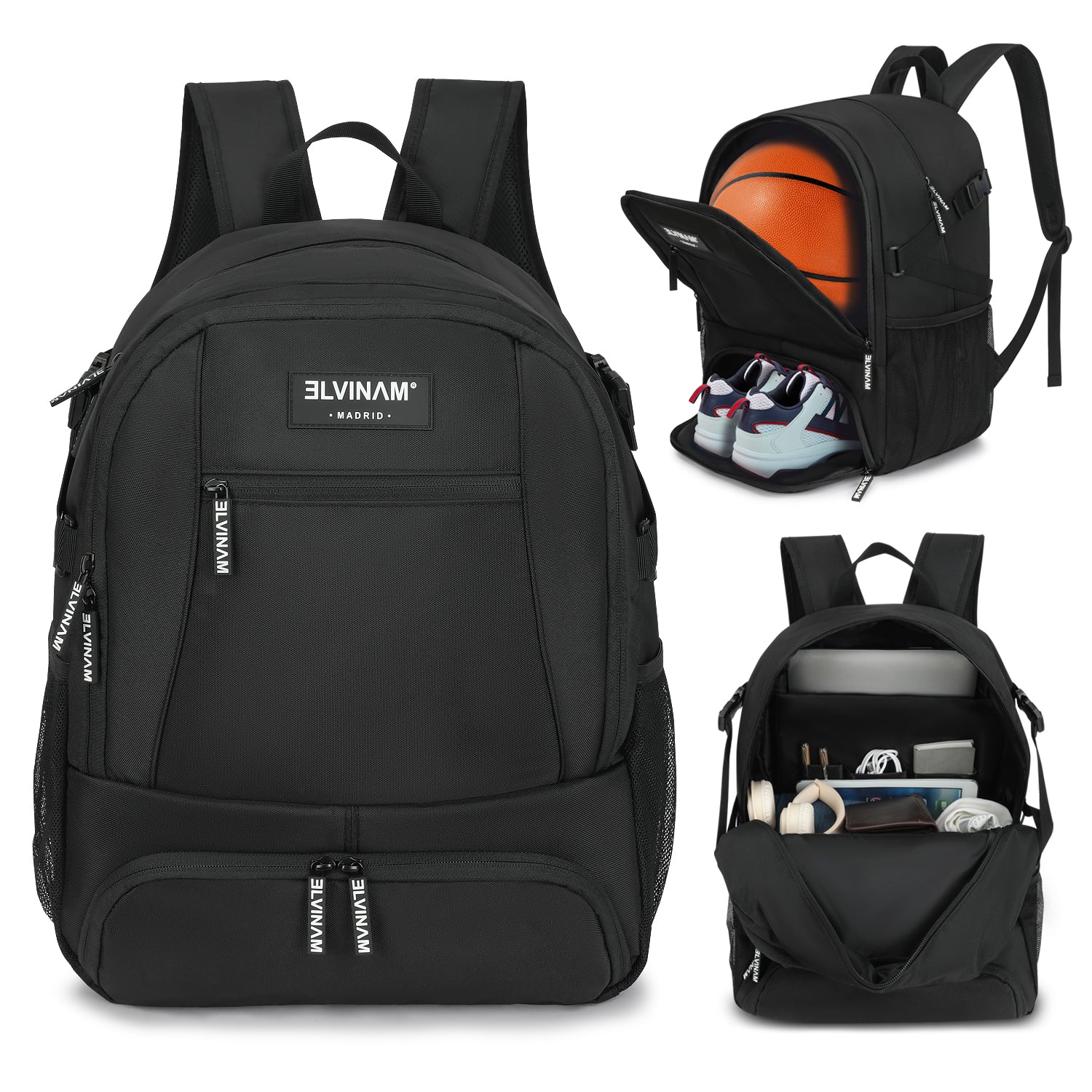 Meet the ELVINAM® SPORT Basketball Backpack – the all-in-one gear carrier for athletes, students, and active individuals. With a special ball compartment at the base, this bag makes it easy to carry your basketball, soccer ball, or volleyball without sacrificing internal space.